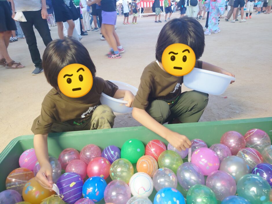 子供たちと一緒に、輪投げ、ボールすくい、射的、ヨーヨー釣りを行ってきました。