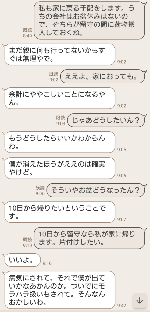9:16に「いいよ。」で終わったと思ってスルーしていたら、9:42に旦那からの攻撃開始!