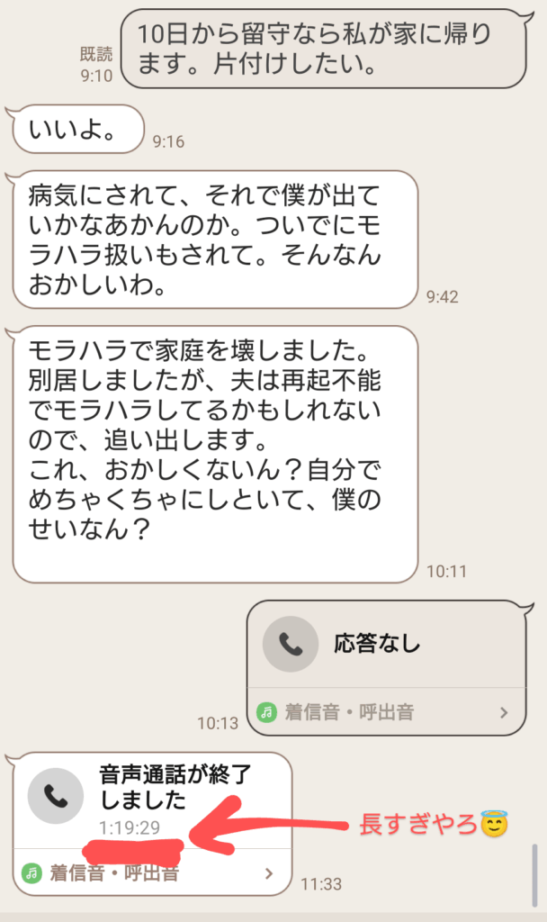 すぐ折り返してかかってきて、1時間20分もしゃべって11:33に終了した。