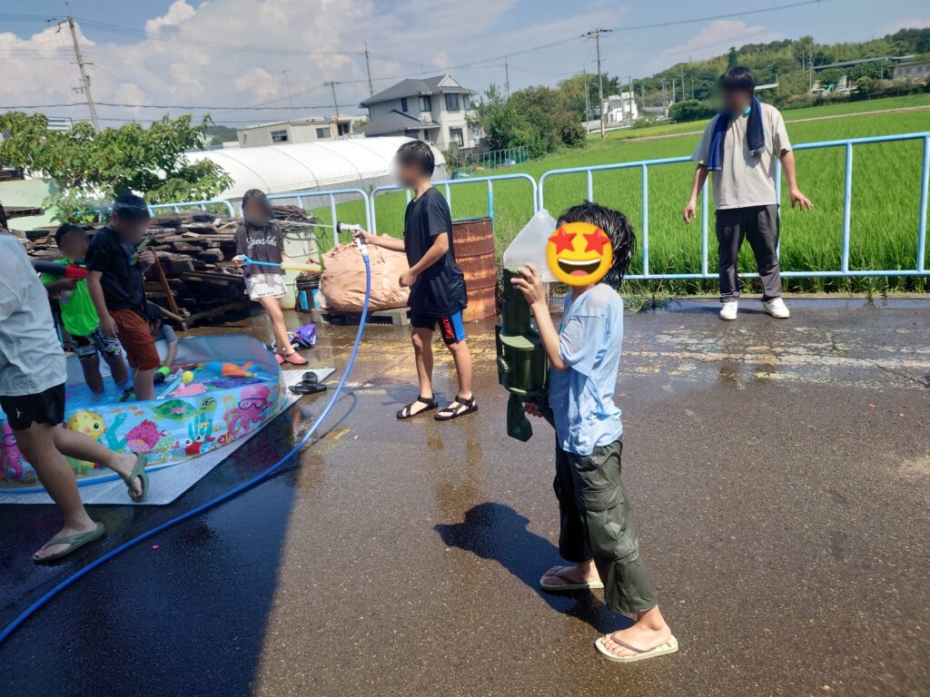 子供たち「早く水遊びしたーい!」ということで、水遊び開始!!